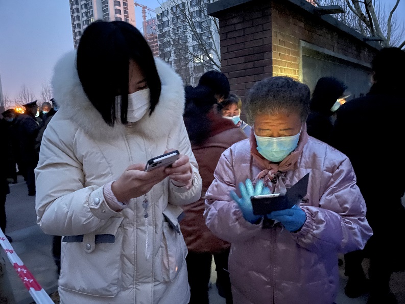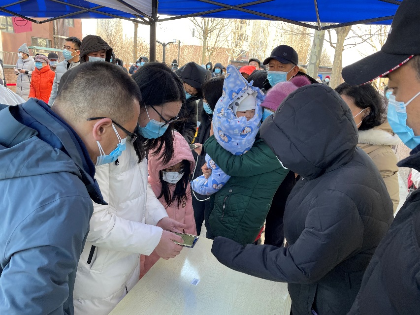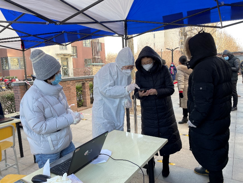 1月10日清晨,志愿者们协助教师公寓居民进行核酸检测登记