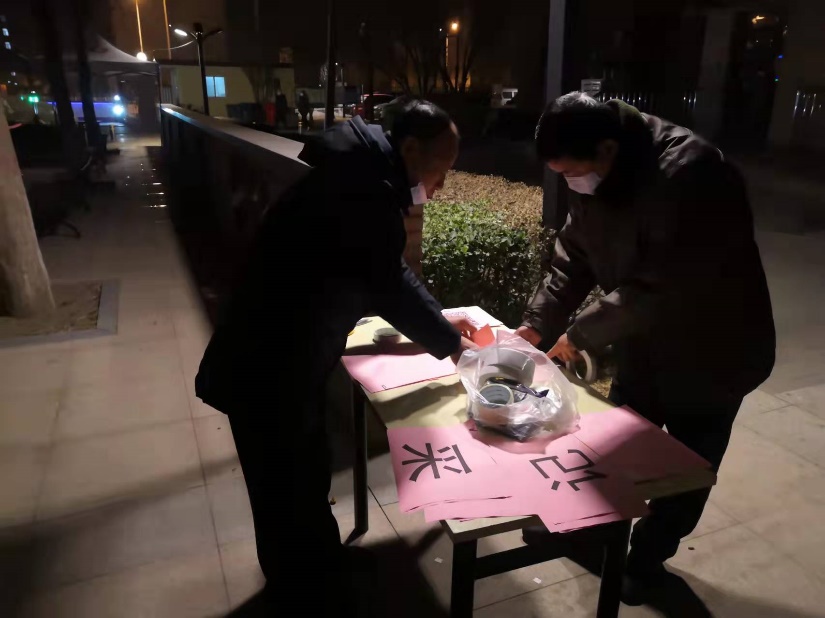 1月9日深夜,教师公寓核酸检测采样点准备工作进行中