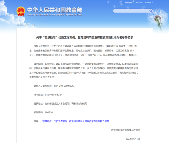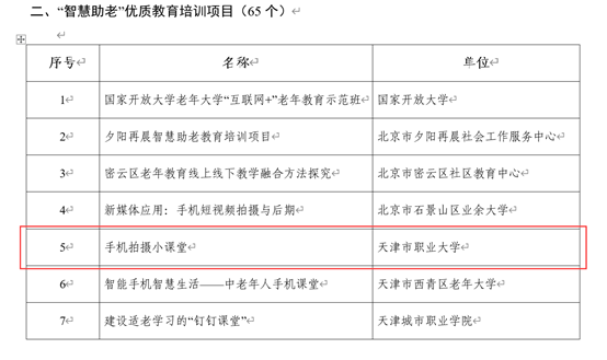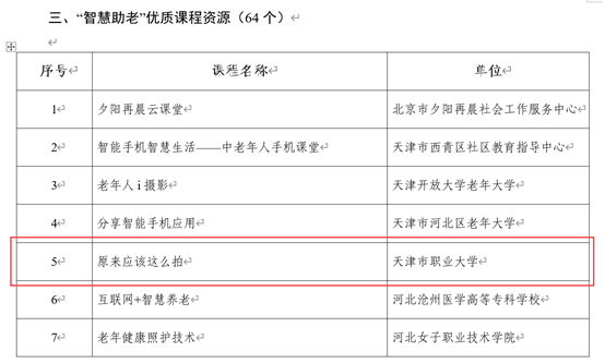 4月1日,教育部职成司发布了《关于“智慧助老”优质工作案例、教育培训项目及课程资源首批推介名单的公示》,beat365官网入选1项“智慧助老”教育培训项目、1门课程资源,分别是“手机拍摄小课堂”项目和“原来应该这么拍”课程资源。