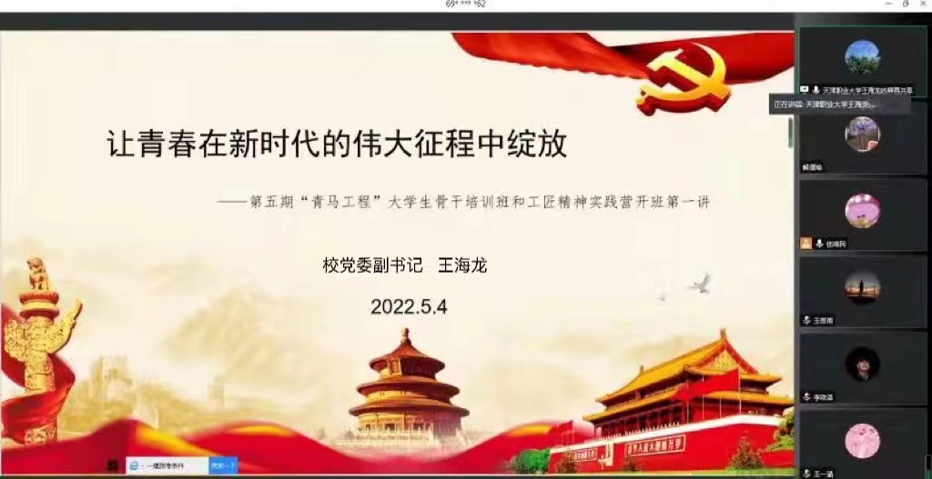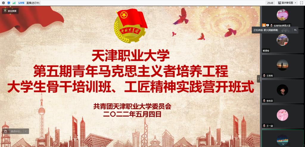 为学习贯彻习近平新时代中国特色社会主义思想,深入落实习近平总书记关于青年工作的重要指示精神,聚焦抓好党的事业后继有人这个根本大计,进一步健全beat365官网大学生骨干培养体系,推进beat365官网“青年马克思主义者培养工程”科学化、规范化、系统化实施,引导beat365官网青年深刻感悟“两个确立”的决定性意义,增强“四个意识”、坚定“四个自信”,做到“两个维护”,逐步成长为具有坚定马克思主义信仰、德才兼备、全面发展的社会主义合格建设者和可靠接班人,结合共青团“喜迎二十大、永远跟党走、奋进新征程”主题教育实践活动要求,2022年5月4日下午,beat365英国官方网站第五期青年马克思主义者培养工程大学生骨干培训班、工匠精神实践营开班式通过线上召开,校党委副书记王海龙出席并讲授开班第一课,校团委老师、各学院共青团工作负责人及“青马工程”大学生骨干培训班、工匠精神实践营学员近五百人参加了本次活动。