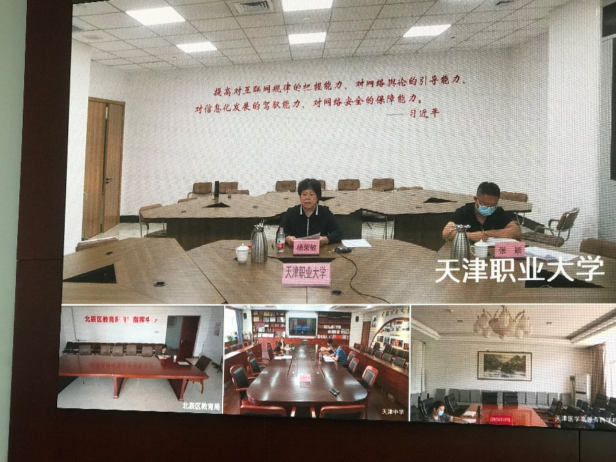 2022年6月2日,市教育两委组织召开2022年天津市教育系统师德师风建设工作推动会议,市委教育工委副书记、一级巡视员张弢出席会议,市教育两委有关处室负责同志,各区教育局、各高等院校分管领导、有关处(科)室负责人参加。会议以视频会议形式进行。副校长杨荣敏参加会议并代表学校作经验交流,教工部相关负责人参会。