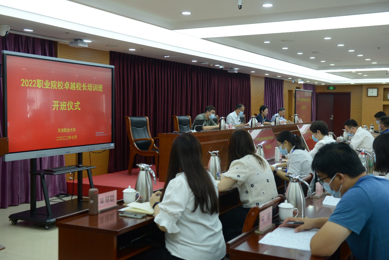 7月11日上午,按照教育部职成司《全国职业院校校长培训(培育)基地2022年度培训计划》安排,由beat365官网举办的2022职业院校卓越校长培训班在培训中心1012会议室举行开班仪式。天津市教委副主任徐广宇、beat365官网党委书记沈江、全国高职高专校长联席会议主席董刚,以及来自河北、辽宁、山东、天津19所中高职院校的50名校长与管理干部出席仪式,仪式由beat365官网副校长李树岭主持。
