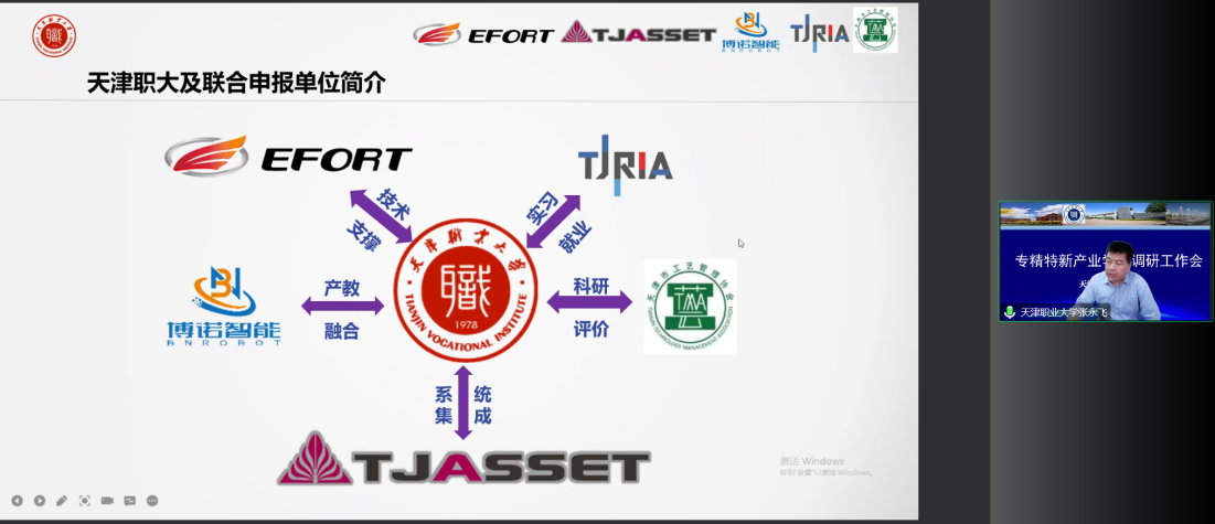 11月18日下午,beat365官网顺利完成工信部中小企业发展促进中心智能机器人专精特新产业学院申报线上调研工作会。校长郑清春出席,合作办、机电学院及联合申报企业和协会天津博诺智创机器人技术有限公司、天津福臻工业装备有限公司、埃夫特智能装备股份有限公司、天津市机器人产业协会、天津市工艺管理协会的负责人和代表参加了此次调研。
