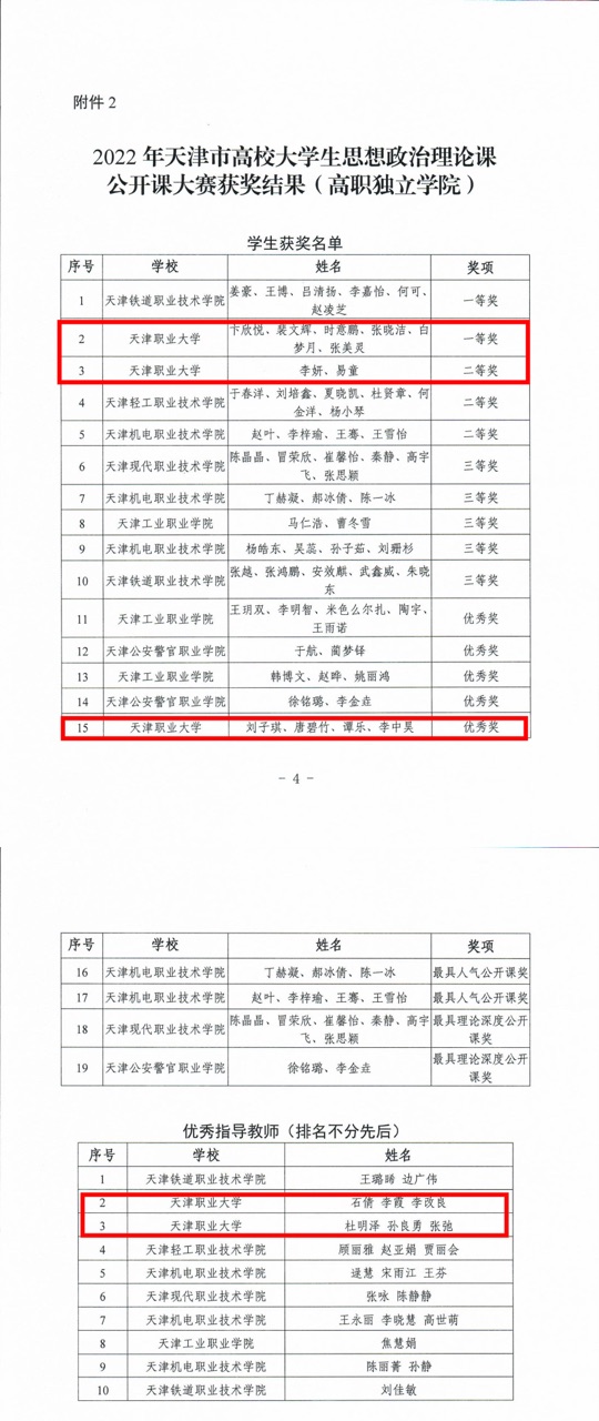 2022年天津市高校大学生思政公开课大赛获奖结果(高职独立学院)公示