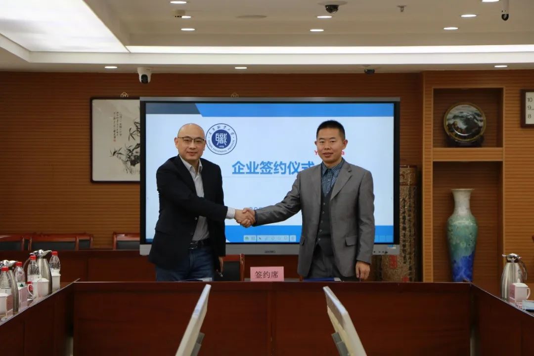 在与会人员的共同见证下,举行新进产业学院企业的签约仪式。