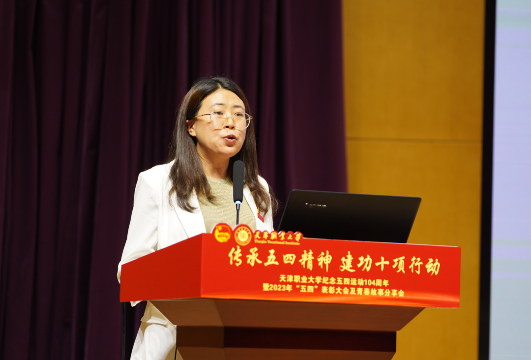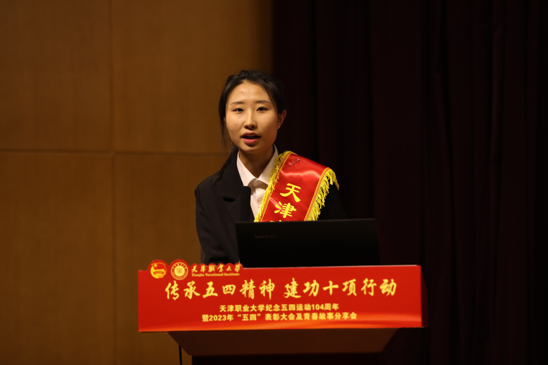 校级五四红旗团委、汽车学院团委书记孟洁做《致敬青春 践行使命》分享展示