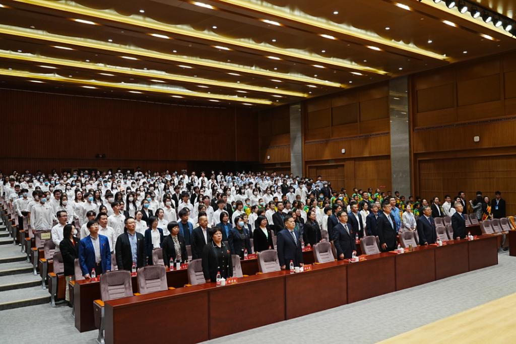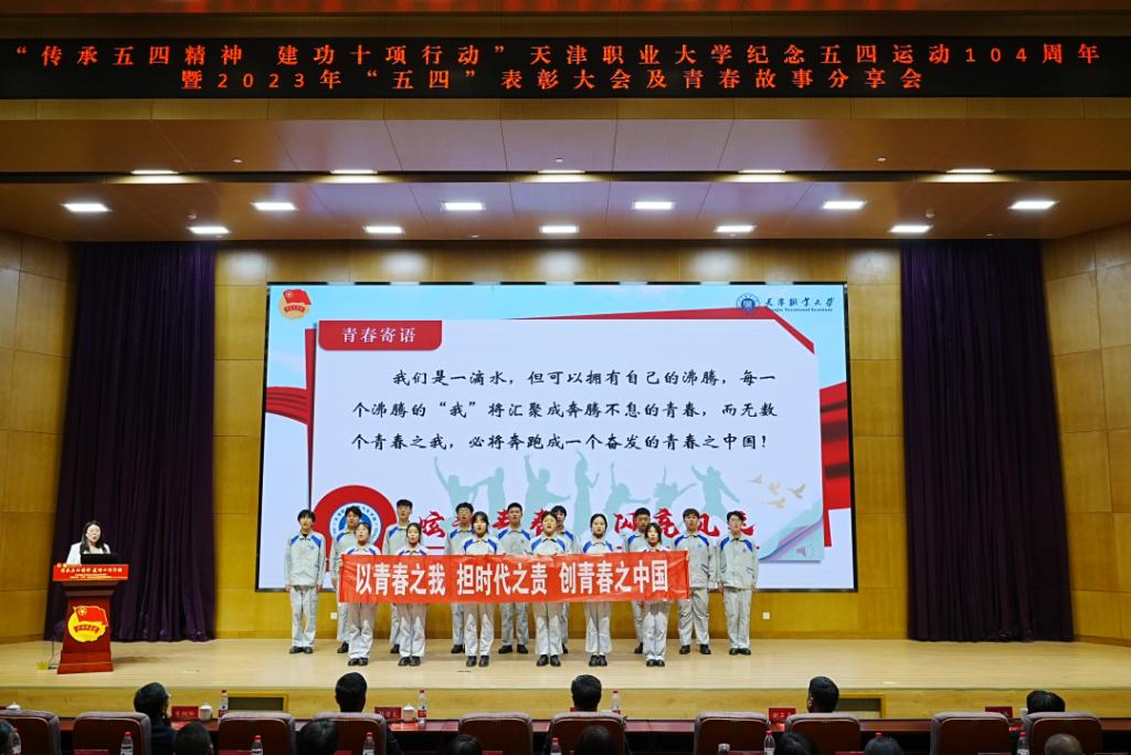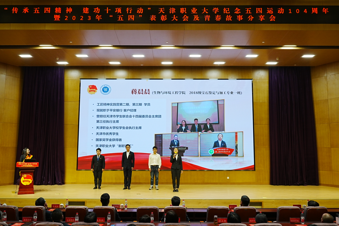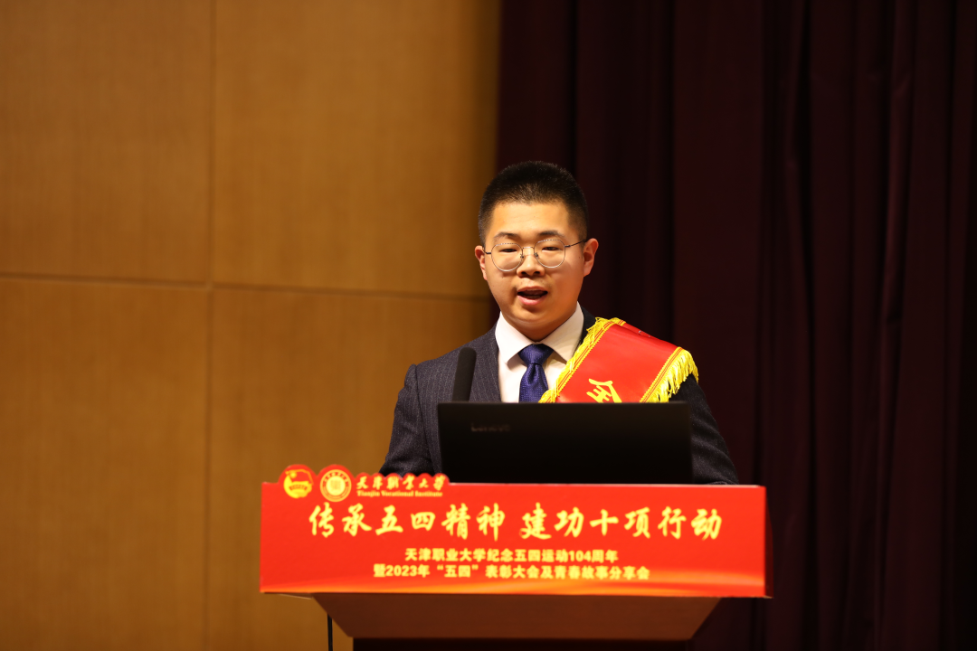 五月的鲜花在光荣与梦想中绽放,信仰的旗帜在奋斗与拼搏中飘扬。为纪念五四运动、铭记光辉历史、传承红色基因、表彰青年先进,5月6日下午,“传承五四精神 建功十项行动”beat365英国官方网站纪念五四运动104周年暨2023年“五四”表彰大会及青春故事分享会在图书馆报告厅隆重召开。校党委书记夏静波出席并讲话,校党委副书记、校长郑清春,副校长刘石英,副校长李树岭,副校长杨荣敏,纪委书记唐勇出席大会,相关职能部门负责人、各学院领导、全体教师团干部、青年师生代表,以及天津市大、中、小学思政课一体化共建单位小淀小学师生代表共400余人参加了此次活动。