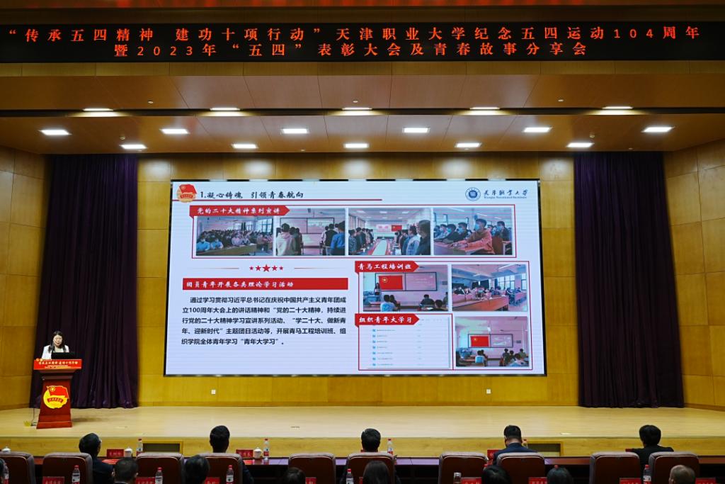 副校长杨荣敏为优秀学院社团管理服务中心,校级A级社团、优秀专业科技社团、最美职大学生代表颁奖,并为全国活力团支部,天津市五四红旗团支部,校级五四红旗团支部颁奖