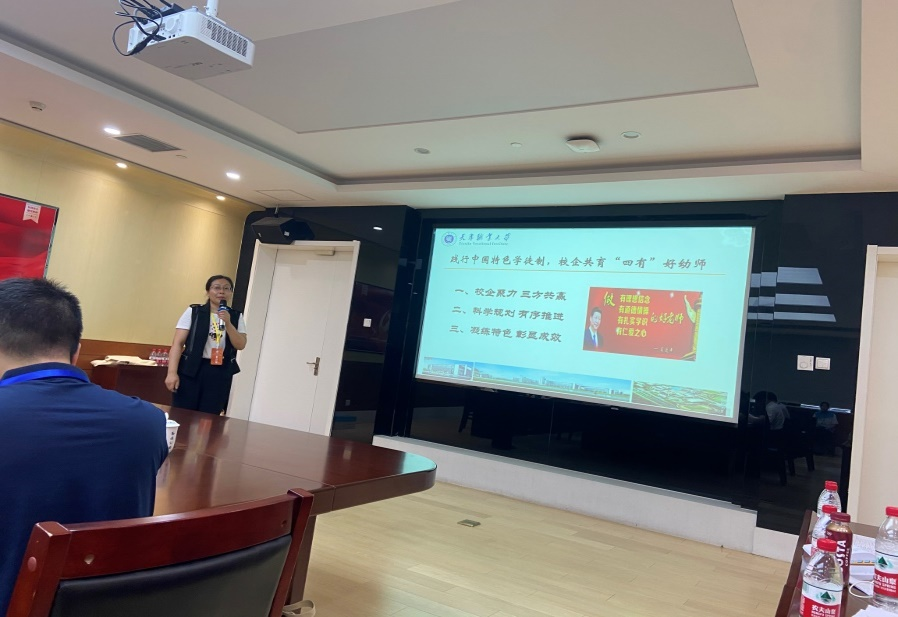 曾新荣老师汇报《践行中国特色学徒制,校企共育“四有”好幼师》
