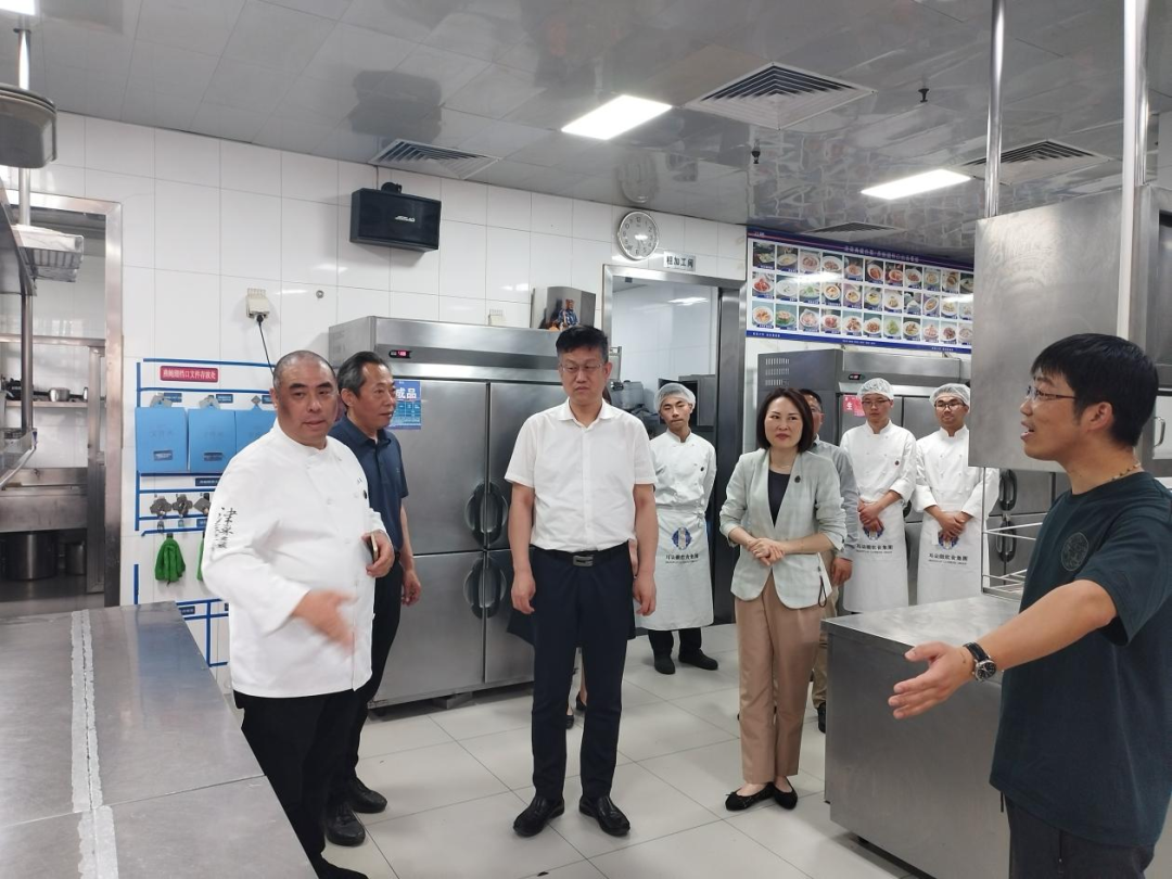 津菜典藏是旅游管理学院津菜学院重要的学生培养基地,在持续推进学校“双高建设”中,津菜学院发挥校企双方资源优势,率先探索成立“津菜班”,今年也是津菜班第一届学生毕业之年,郑校长深入津菜典藏旗舰店,看望即将毕业和刚刚前来实习的学生代表,了解他们的工作学习内容,听取他们岗位学习的感受,参观厨房工作环境,叮嘱他们要在坚守传统夯实功底的基础上肯于吃苦,不断锤炼品格,提升能力,深悟津菜底蕴,努力打造舌尖上的美味,为日后传统技艺的传承发展做出贡献,守正创新。