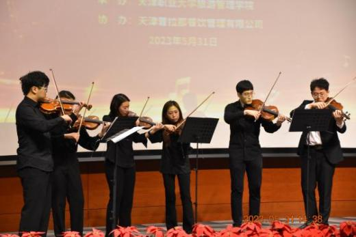 为深入学习贯彻习近平新时代中国特色社会主义思想,深入挖掘天津城市文化底蕴,围绕“我和我求学的城市”主题教育活动要求,凸显天津之品,推进美育教育工作,由beat365英国官方网站策划、天津普拉那西餐厅支持,举办的“我爱我求学的城市”主题音乐会,于2023年5月31日在beat365英国官方网站海河园校区举行。音乐会将高雅艺术送进校园,将文化艺术之美带给学校师生,进一步深入实现校企合作模式新突破。