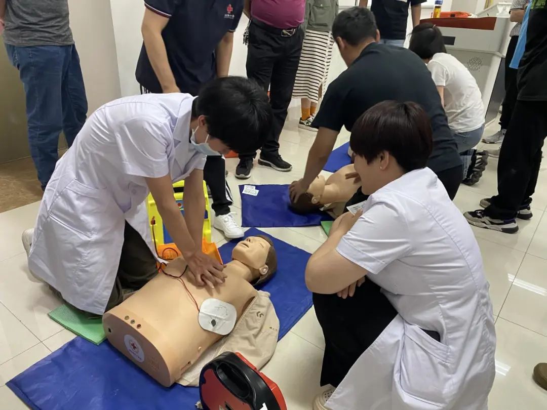 第二部分是心肺复苏的现场实际演练,天津市津南区红十字会培训师孟庆茹老师以模拟橡胶人为器具,现场演示了正确的心肺按压和人工呼吸方式。现场解答了与会学员的各种提问并开展了实操考试,使参加培训的学员较为系统地掌握了心肺复苏现场紧急救援知识和正确处理方法,为应对紧急病患赢得“黄金”救援时间奠定了良好的急救基础,进一步提升了学员紧急抢救的能力。