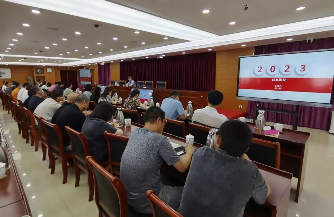 为深入学习贯彻党的二十大精神,落实学习贯彻习近平新时代中国特色社会主义思想主题教育关于廉洁自律方面的要求,扎实推进机关党风廉政建设和反腐败工作,筑牢拒腐防变思想防线,6月7日下午,机关党委举办2023年度机关科级干部警示教育讲座。校纪委副书记、纪委办公室主任李占昌同志以《以案说纪》为题,向机关全体科级干部做专题讲授,机关党委书记主持会议。