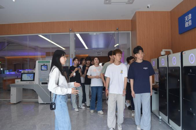 天开高教科创园以习近平新时代中国特色社会主义思想为指导,将科研成果向生产力转化,构成完整的“一核两翼”研发、孵化、转化和产业化布局,为高校科技成果转化和创新创业提供了一体化发展空间。展厅一楼分布着智慧微厅办税系统、证件照自主办理系统等具有现代化高水平的基层服务设施模型,展厅二楼展示了创新创业生活模板、飞秒激光技术与装备产业化等更加先进的科创科研成果。通过深入的参观研学,同学们感受到这些设施设备的建设能够充分提升基层群众的生活质量和幸福感,同时也看到了现代化服务体系的发展和科技的进步。