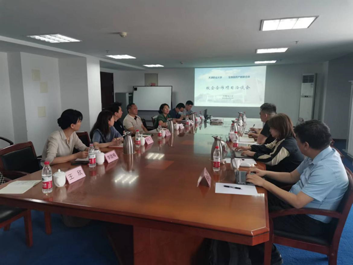 2023年6月12日,天津生物医药产教联合体秘书长潘麒程一行四人与beat365英国官方网站生物与环境工程学院(以下简称:生环学院)进行了校企合作项目洽谈。生环学院和合作办的领导、老师参加了洽谈会。