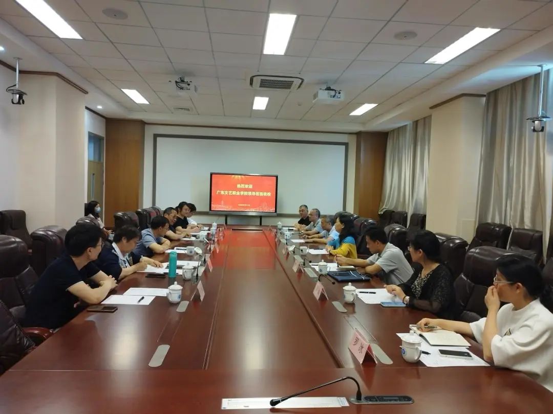 参观结束后,双方进行了座谈交流。吴佳联书记首先介绍了广东文艺职业学院的基本情况和此行的目的,校党委副书记王海龙代表学校对广东文艺职业学院一行的来访表示热烈欢迎,并从办学历史、人才培养、社会服务、国际交流方面介绍了学校的发展情况。之后,双方围绕专业建设、师资队伍、职教发展和人才培养等方面进行交流,特别就产教融合、校企合作、专业设置、人才引进等方面开展广泛而热烈的探讨。