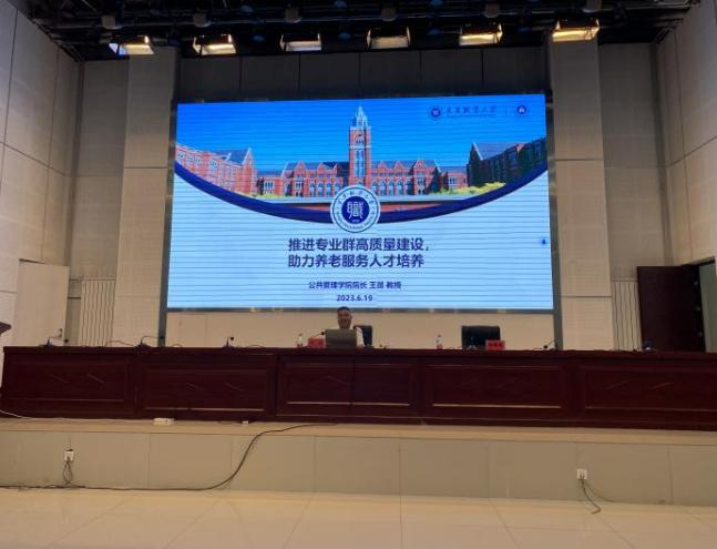 王昆院长以《推进专业群高质量建设,助力养老服务人才培养》为题,从人才需求,组群逻辑,人才培养模式,科研服务能力四个方面,阐释了国内大环境下养老产业的前沿发展态势以及下一步的规划发展路径,为和田职院相关专业建设发展提供了借鉴和参考。