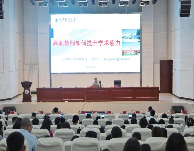 郑清春校长以《实施“双高计划”,贡献学校高质量发展的“天职”方案》为题,通过解读《关于深化现代职业教育体系建设改革的意见》中的“一体、两翼、五重点”,从职业教育政策体系、服务天津探索职教改革的省域方案、携手政行企研、紧盯重点任务等方面,分享了beat365官网在推进职业教育建设改革和“双高”建设中的探索与实践。