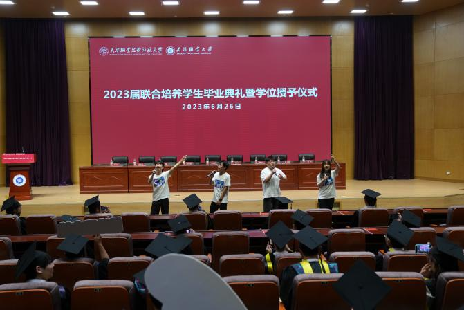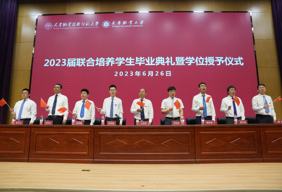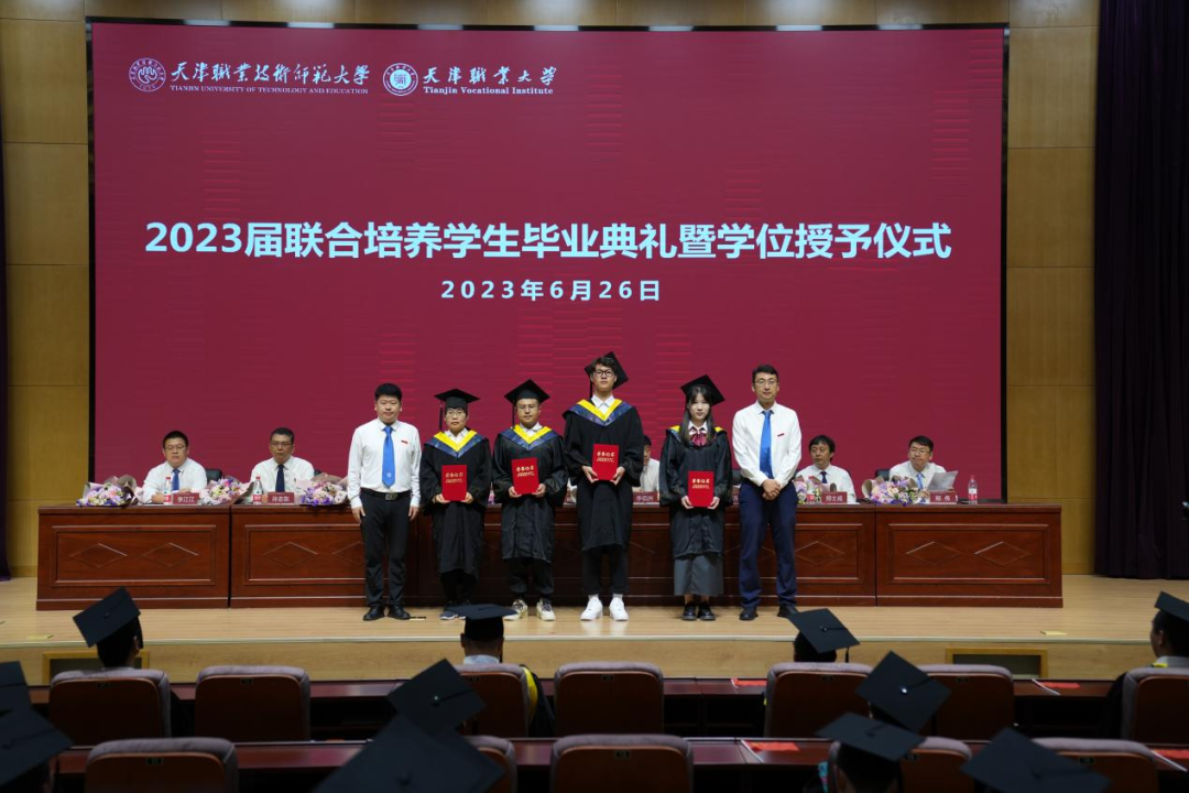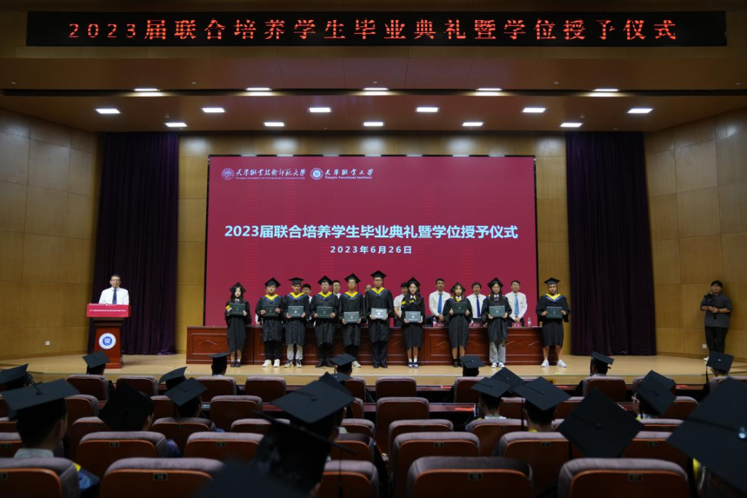 2023年6月26日下午,天津职业技术师范大学·beat365英国官方网站2023届联合培养学生毕业典礼在beat365官网图书馆报告厅隆重举行。天津职业技术师范大学教务处副处长李佰洲、beat365官网机电工程与自动化学院与汽车工程学院领导班子成员、两个学院教师代表以及全体毕业生共同参加毕业典礼。毕业典礼由汽车工程学院党委书记罗思路主持。
