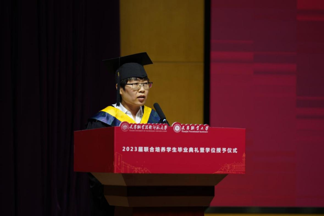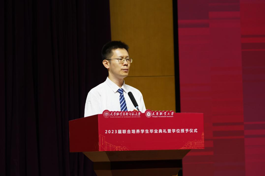 天津市“131”创新型人才培养工程第二层次人才、天津市优秀企业科技特派员,机电工程与自动化学院副院长郑伟老师作为教师代表寄语同学们“拥抱生活、拥抱未来”,发扬职业教育中精益求精的工匠精神,树立终身学习的意识,在学以致用中精进自身的能力。