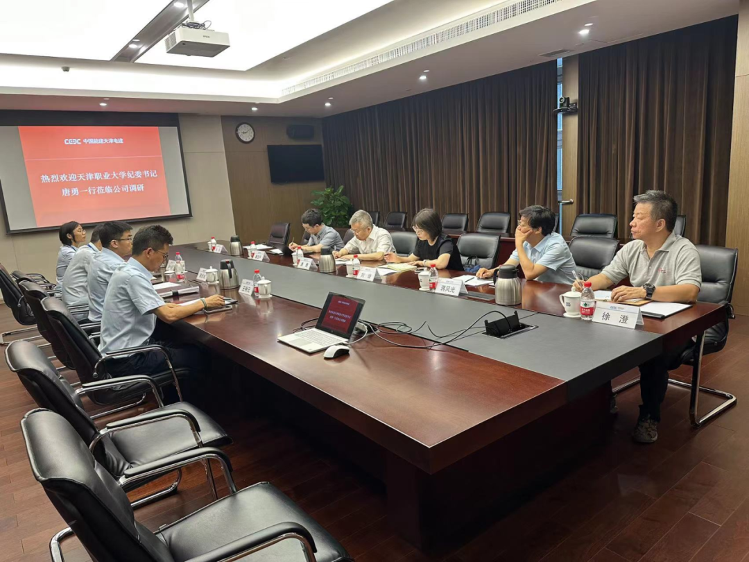 唐勇书记一行6人参观了中国能源建设集团天津电力建设有限公司,共同观看了天津电力建设有限公司企业宣传片,对企业发展历史、主要业态分布、所处行业位置、企业文化建设等方面进行了解。参观结束后,与中国能源建设集团天津电力建设有限公司人力资源部部长谢忠良、副部长汤大庆、招聘主管王明元、优秀校友代表安全管理部主管杜学芸进行了座谈。