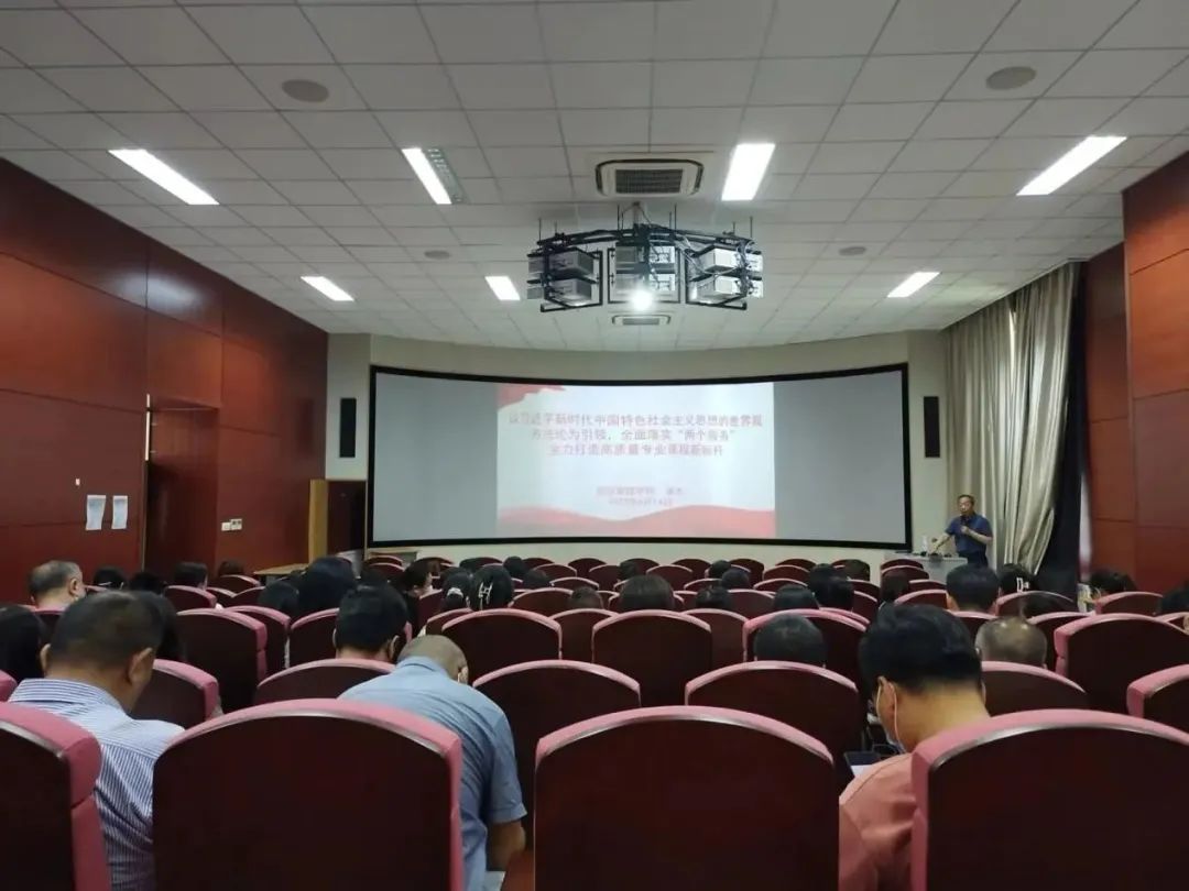 匠心分享全力打造高质量专业课程新标杆。6月14日学院党委书记诸杰以《以习近平新时代中国特色社会主义思想的世界观、方法论为引领,全面落实“两个服务”,全力打造高质量专业课程新标杆》为题,向全体教师开展了专业课程建设主题讲座。党委书记从落实立德树人根本任务出发,深刻剖析新时代职业教育高质量发展要求,以着力建设高质量专业课程为重要抓手,引导教师遵循职业教育教学规律,创新教学模式方法打造适合学生全面发展、适合岗位需要的专业课程,为教师系统全面的讲解通过“五维”建构、“八化”并举,构建出高质量课程建设方法模型,提出了教师“7+1”特质追求。