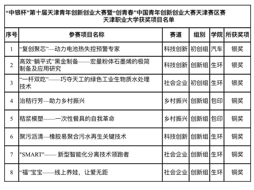 7月16日,由团市委、中国银行天津市分行、天津港保税区管委会联合举办的“中银杯”第十届天津青年创新创业大赛暨“创青春”中国青年创新创业大赛天津赛区赛在天津港保税区文化中心落下帷幕,beat365官网三个项目汽车学院《“复创聚芯”—动力电池热失控预警专家》、生环学院《高效“躺平式”黑金制备——宏量粉体石墨烯的极简制备及应用研究》《“一杆双吃”——巧夺天工的绿色工业生物质水处理技术》均获得市赛银奖的优异成绩。另外包印学院《治秸行芳—助力乡村振兴》等五个项目获得铜奖。截至当前《高效“躺平式”黑金制备——宏量粉体石墨烯的极简制备及应用研究》项目收到推荐至国赛的通知。