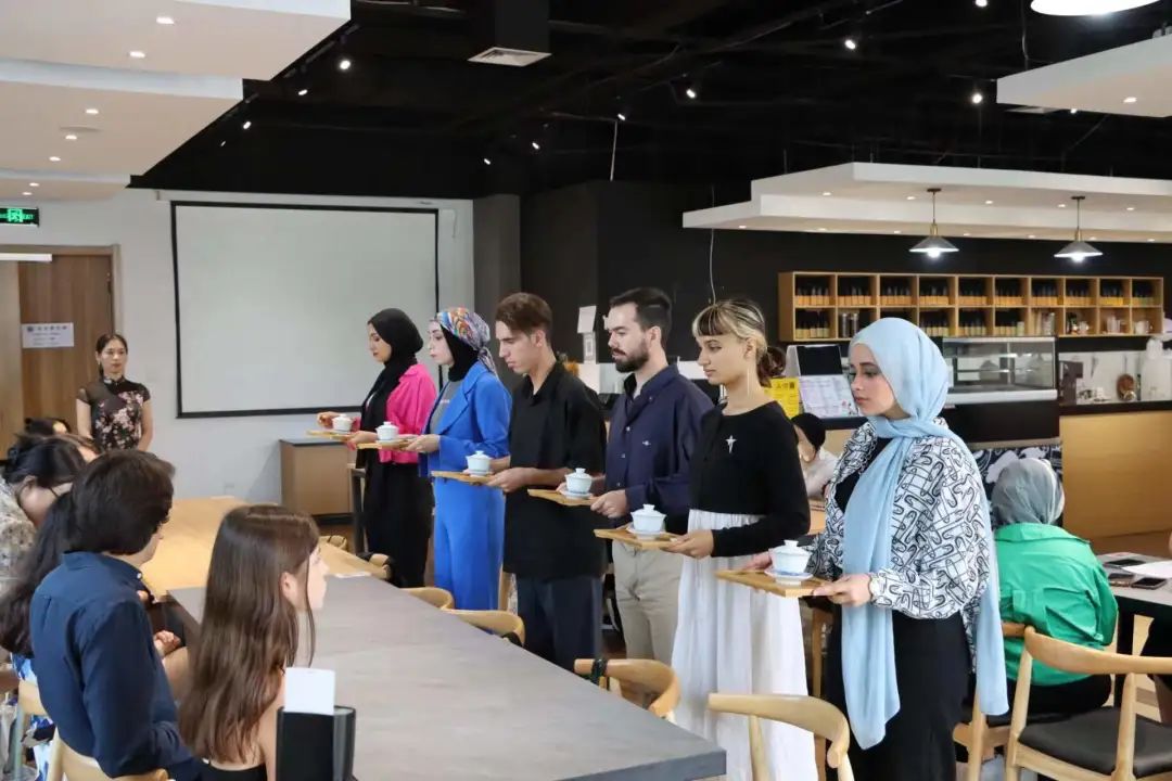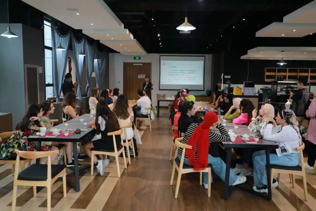 活动中,首期培训班的技能培训指导教师王亚萍发言,她表示学术无界、文化无墙,本次带着一杯幽幽的茶香和各位留学生朋友们共同感受中国茶文化的魅力,虽然时间短暂,但从交流和互动中感受了大家对茶文化的喜爱,也希望新时代青年肩负起文化传承的重任,坚持不懈、勇于创新。