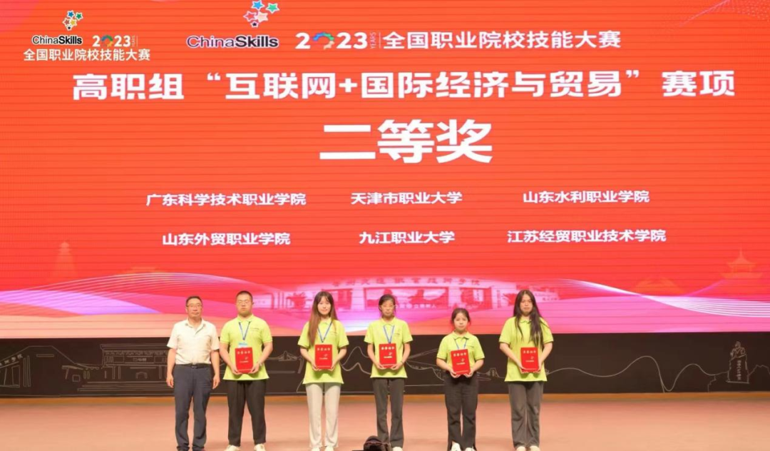 2023年7月24日至25日,2023全国职业院校技能大赛高职组“互联网+国际经济与贸易”赛项在贵州交通职业技术学院举行,来自全国各地的65支代表队总计260名选手同台竞技。经过激烈角逐,beat365官网经济与管理学院2021级国际商务专业韩冬雨、陈驰、朱忠锋、刘亚宁4名同学以综合排名全国第九获得全国“互联网+国际贸易综合技能”赛项二等奖,创造天津市历年来最好成绩。