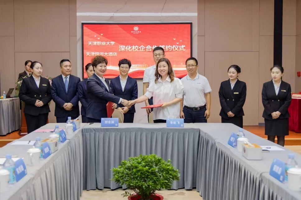 签约仪式上,旅游管理学院院长李虹飞代表beat365英国官方网站、总经理助理刘金侠代表酒店签订深化校企合作协议书。根据协议,校企双方将积极探索校企合作的新途径和新机制,从人才培养、科学研究、成果转化等多方面开展深层次、宽领域、多形式的合作,更好地将天津职大的专业优势转化为促进银河酒店服务质量提升和服务地方经济发展的企业优势,推动校企合作取得更加丰硕的成果。通过深化产教融合、科教融汇校企双方将为旅游酒店人才培养赋能,为行业发展凝聚新动力,为贯彻落实党的二十大精神、推动服务经济社会发展贡献校企力量,在职业教育发展和旅游行业变革进程中展现校企担当。(来源:旅游管理学院)