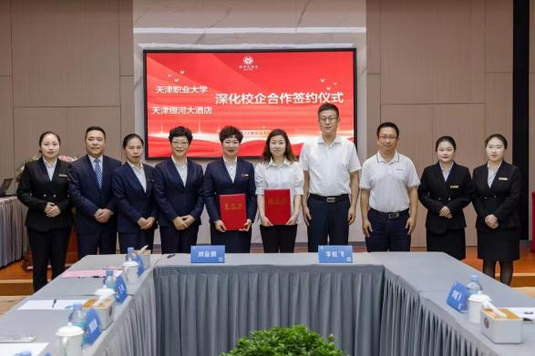 为深入贯彻落实党的二十大精神,按照《职业教育产教融合赋能提升行动实施方案》关于推进产教融合、科教融汇要求,进一步深入开展访企拓岗促就业行动,2023年8月8日,校长郑清春带领旅游管理学院到天津市银河大酒店有限公司开展访企拓岗调研活动,并出席beat365英国官方网站与天津市银河大酒店深化校企合作签约仪式。银河大酒店总经理宋秀敏、总经理助理刘金侠、beat365英国官方网站在银河酒店就业的毕业生代表出席签约仪式。签约仪式由留企就业的2022届校友郑晓双主持。