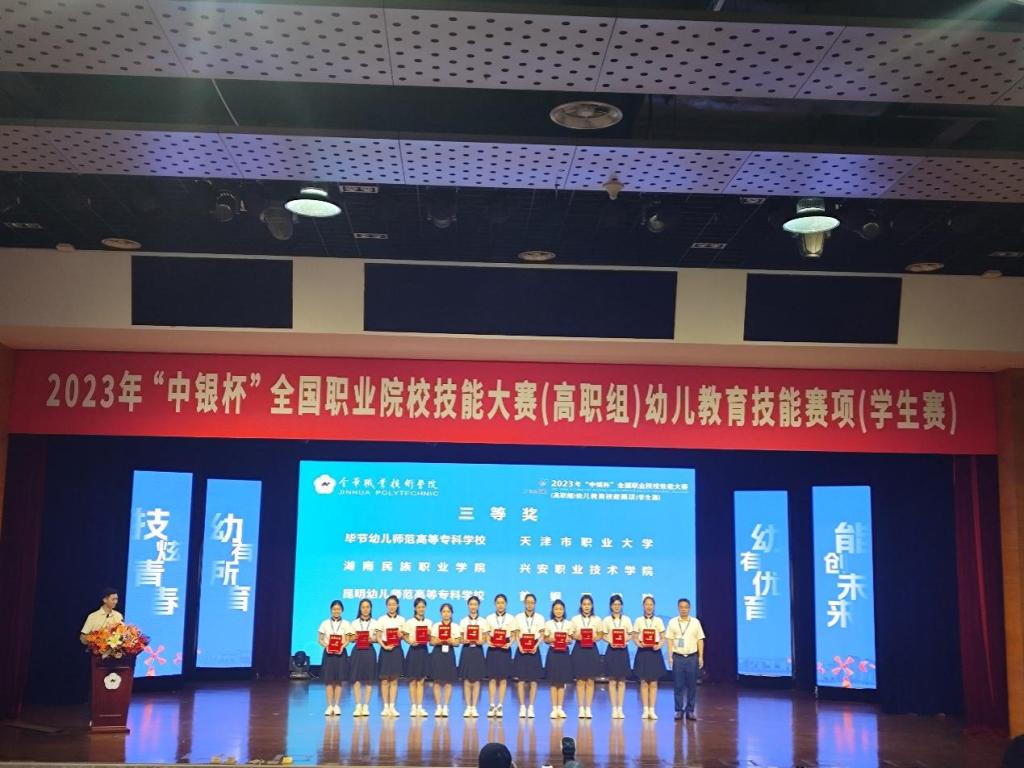 beat365官网公共管理学院20级学前教育专业学生汪诗然,21级学前教育专业学生张惠玲在刚刚结束的2023年“中银杯”全国职业院校技能大赛(高职组)幼儿教育技能赛项(学生赛)中凭借出色发挥获得三等奖。这是天津高职院校在该赛项上首次获得国奖。今年,幼儿教育技能赛项于8月19日-8月22日在浙江金华职业技术学院举行,来自全国31个省(直辖市、自治区)的59个院校、59支代表队118名选手参加了本次比赛。