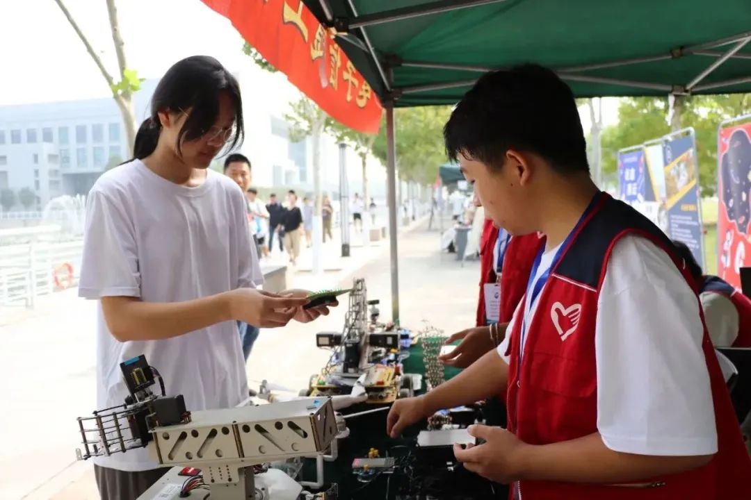 在迎新现场,十个学院的专业科技类社团成员化身校园科普志愿者,展示了在社团活动中常用的相关实验实训展品、兴趣小组发明以及创新创业成果,为新生带来了极富专业特色、科技感满满的展品和互动体验项目。校党委书记夏静波老师和校长郑清春老师也认真参观并和社团成员亲切交流。参与体验的新同学们无不赞叹:这里不仅仅有美丽的校园风光,还让我们体验到了引人入胜、妙趣横生的“专业游园会”,让我们第一次接触专业就如此的兴奋,如此的感动。“职”育工匠,未来可期。