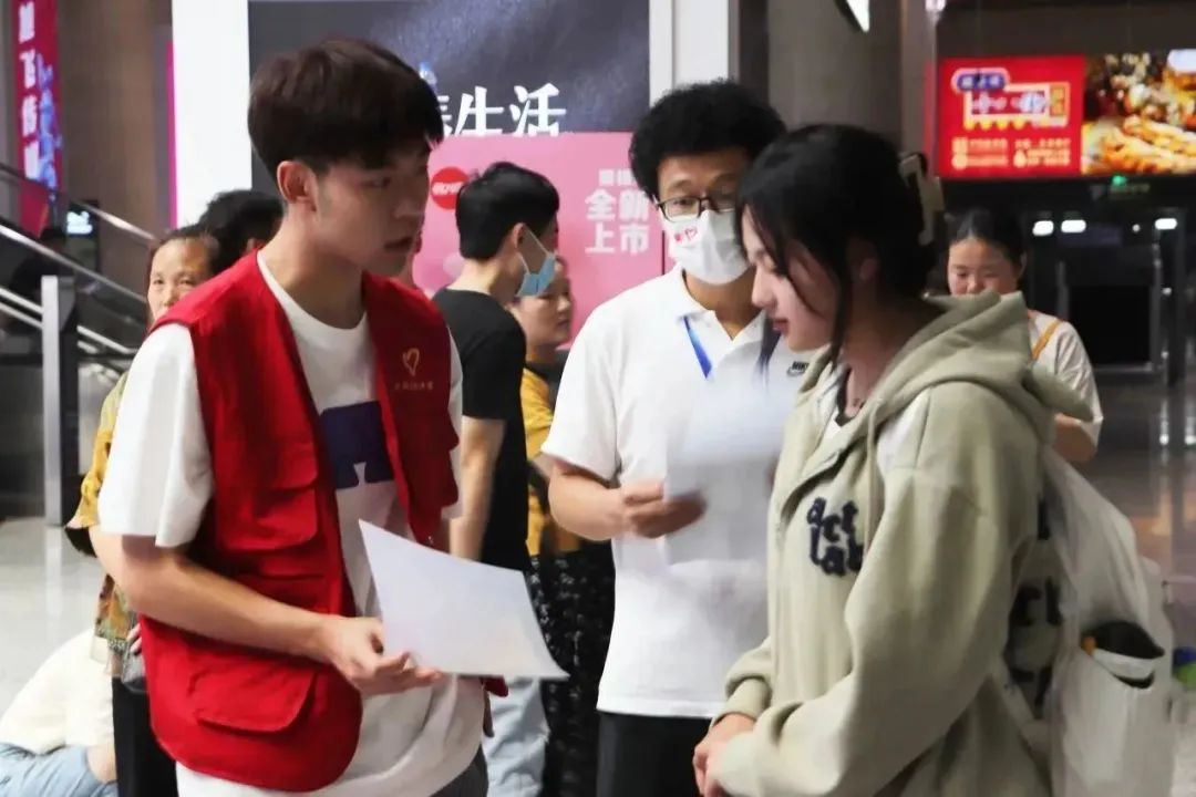 各个学院志愿者们也在新生报到的时间段积极联动,在地铁出站口、学校西门和南门等区域迎接新生,带领大家找到各自学院报到点顺利完成报到,杜绝了新生因初来乍到的不熟悉可能引起的迷路或被骗等问题。各报到处及服务台工作人员则把控全局、做好导引工作,帮助同学和家长减少人流拥挤、适时休息,为整体迎新工作的顺利完成起到了承上启下的关键作用。