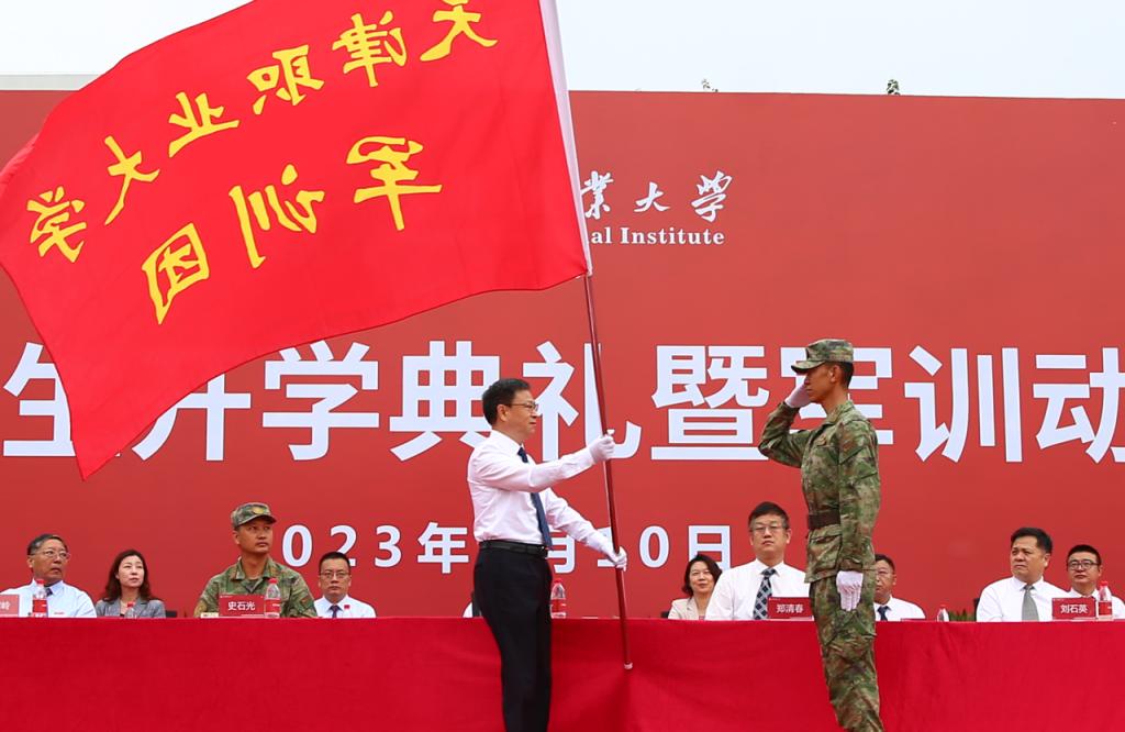 云天收夏色,木叶动秋生。2023年9月10日上午,伴随着初秋温润的阵阵清风,beat365英国官方网站2023级学生开学典礼暨军训动员大会在主校区体育场隆重举行。校党委书记夏静波,校党委副书记、校长郑清春,副校长刘石英、李树岭、杨荣敏,纪委书记唐勇出席典礼,承训单位领导和教官、相关职能部门负责人、各学院负责人、辅导员、教师代表及2023级全体学生参加了典礼。典礼由副校长杨荣敏主持。