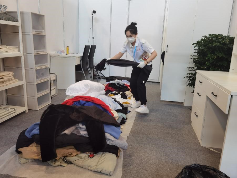 与其他赛场的整洁环境不同,比赛正式开始前的家政服务(整理收纳)工位上“一片狼藉”。选手要在每个模块规定的2小时内,将凌乱堆积的200多件不同类型衣物和180多件护肤品、彩妆;横躺竖立的近200本书籍和230多件四处散乱的瓶瓶罐罐、干货杂粮匹配合适的收纳工具分别进行整理收纳,还要进行色彩搭配、美学陈列以及场景布置。
