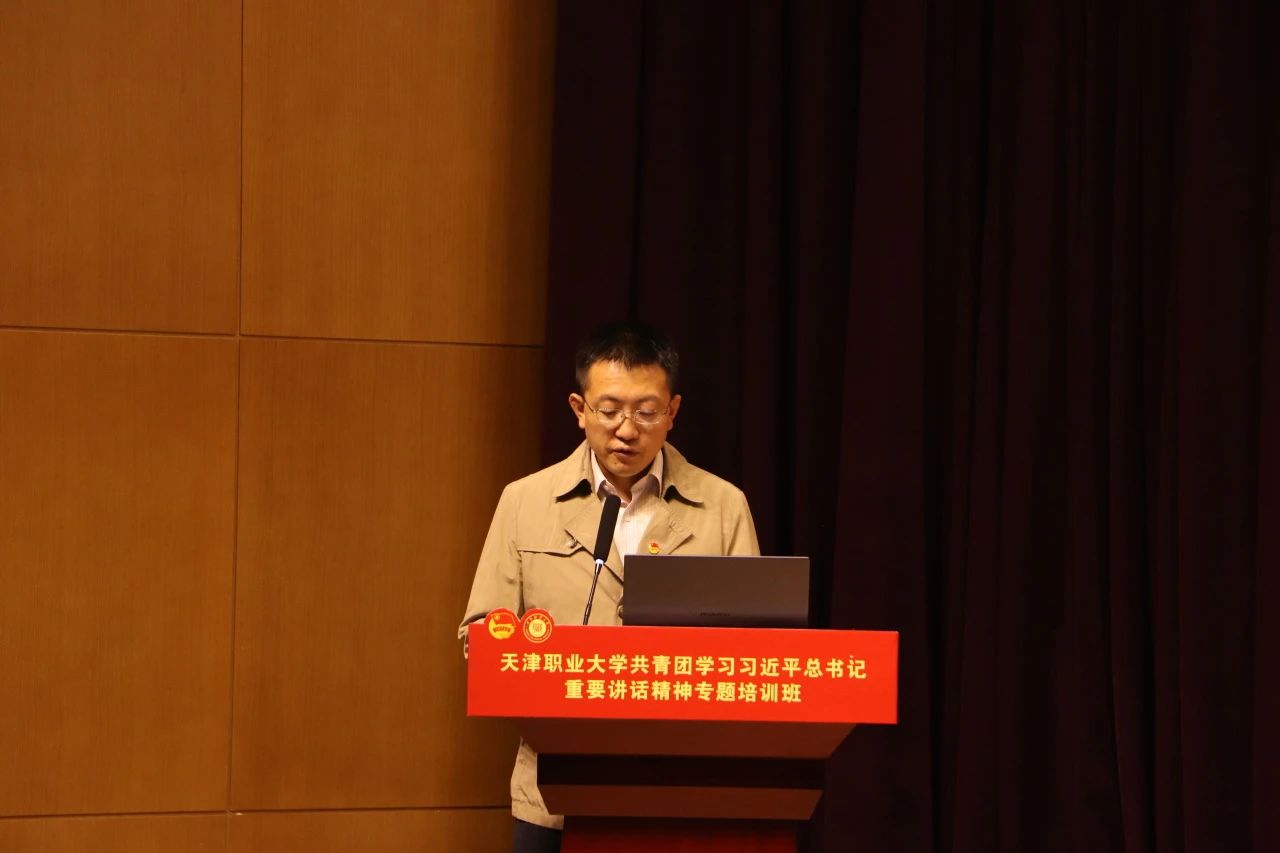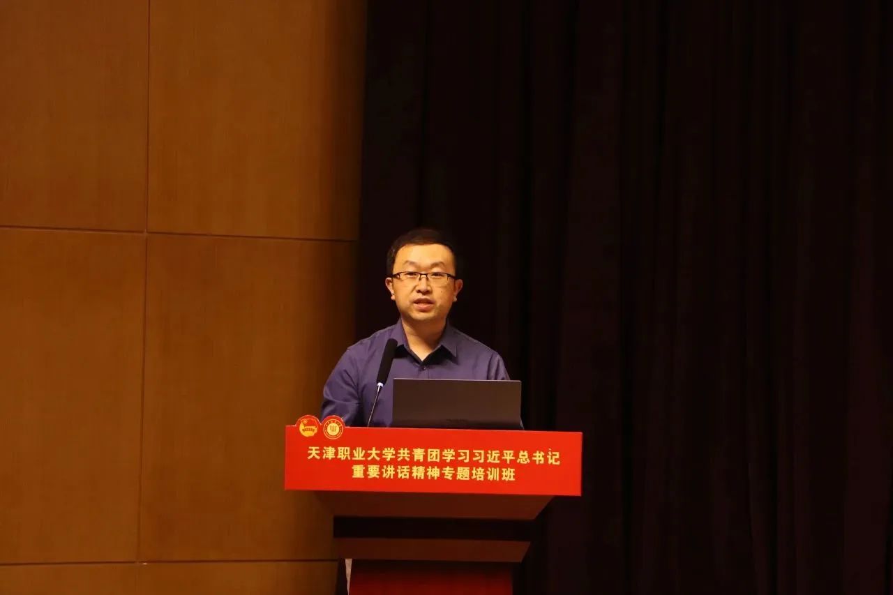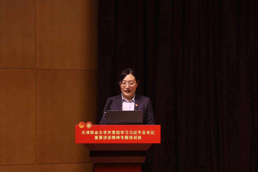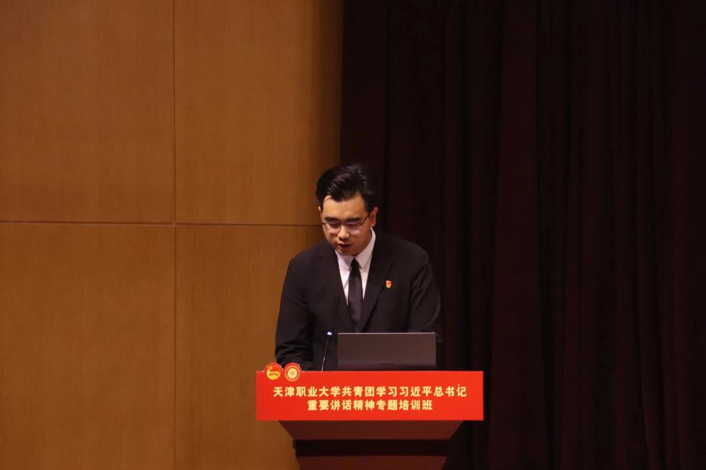 团十九大代表、校青年理论宣讲团学生团长、校第六期“青马工程”工匠精神实践营学员、公共管理学院团委(学生)副书记、2020级社会工作(老年福祉与管理)专业1班班长兼团支部副书记王思雨作为学生代表发言,他分享了自己对习近平总书记在同团中央新一届领导班子成员集体谈话时的重要讲话精神、党中央致词精神的感悟,表达了要在专题培训过程中不断加强理论学习、立足丰富实践活动、奋进建功立业的信心,体现了天职学子青春逢盛世、逐梦正当时的精神风貌。天津市青年讲师团成员、天津市优秀团干部、艺术工程学院团委书记史超老师在交流发言中结合丰富的团学工作经验向大家阐述了作为教师团干部应该如何在自身加强学习、提升理论水平的同时,充分发挥学生团员和青年的特点,强化青年思想引领、服务青年成长发展,引导青年提振信心、奋发有为。马克思主义学院贠雅娟老师作为beat365英国官方网站青年理论宣讲团指导教师,从加强理论宣讲、学深悟透习近平总书记重要讲话精神的角度向大家发出了号召,也将参与培训班和宣讲工作的全程指导,充分发挥师生团干部的骨干作用,切实增强各级师生团干部党的科学理论青年化阐释能力,能够深入基层支部、学生组织进行面对面理论宣讲,带动广大青年学生深化认识、深入领会。