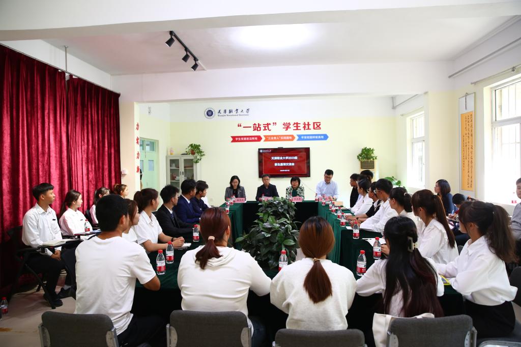 座谈会上,学生代表积极踊跃发言,大家从初识天津到校园故事,从城市文化到学校美景,从专业认识到职业发展,从未来理想到生活小事谈感受、聊体会,真情实感、畅享未来。在同学们真情流露地发言中,与会老师围绕日常生活与服务、专业学习与规划等方面给予了指导与鼓励,让学生真正享受“零距离”服务。