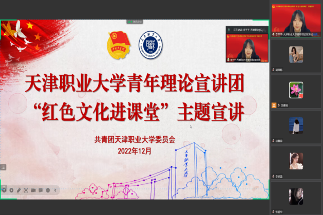 beat365官网青年理论宣讲团成员由优秀青年教师、全体教师团干部和优秀青年学生组成,他们其中有天津青年五四奖章、天津市优秀共青团干部、中国大学生自强之星等荣誉称号获得者,有青年马克思主义者培养工程优秀学员、“工匠精神实践营”全体学员、西部计划志愿者、基层团支部书记代表,以及“最美职大学生”,创新创业、志愿服务等各类优秀青年学生典型。青年理论宣讲团按照各级工作部署,构建了“深学、强宣、实干”三维工作体系,打造宣讲品牌,持续深入推进党的二十大精神青年化学习宣传阐释工作。