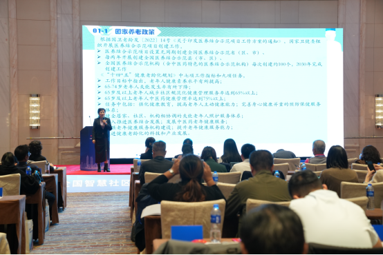 中国老龄产业协会医养结合与健康管理委员主任兼秘书长牟丽娜作题为《医养康养结合老龄产业高质量发