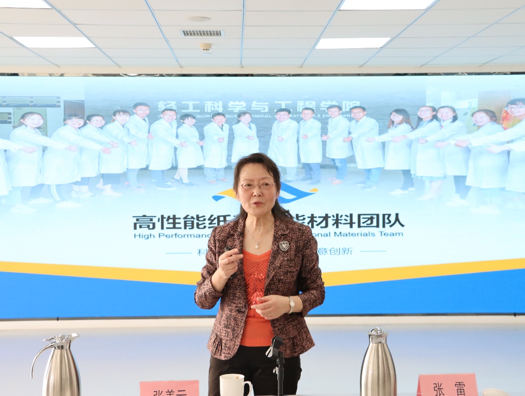 国家十三五重点研发计划首席科学家、国家高层次人才特殊支持计划领军人才、“全国高校黄大年式教师团队”负责人,国务院特殊津贴专家、全国优秀教师、全国优秀科技工作者、“中国造纸蔡伦科技奖”获得者,陕西科技大学原副校长张美云教授作题为《科研团队建设的体会与经验分享》专题讲座。