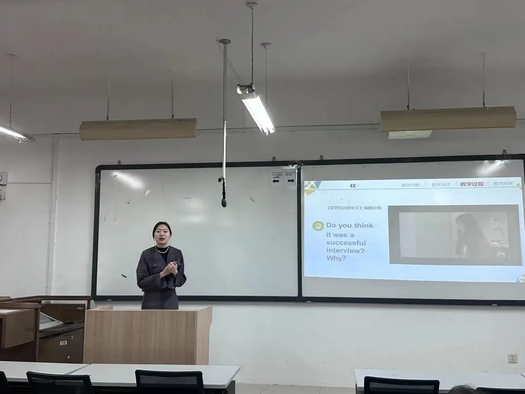 部门竞赛由高级职称教师、往年参赛获奖教师、领导班子成员担任评委。参赛教师采用“无生授课”形式,用饱满的精神、新颖的理念、生动的语言、精美的课件、巧妙的设计展示了引人入胜的课堂。