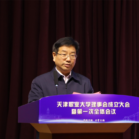 天津市教委副主任徐广宇代表市教育两委对学校理事会的成立表示祝贺,他指出,组建理事会有助于完善多元参与、内外协同的学校治理体系,有助于建立多方支持与监督评议学校发展的长效机制,是学校深入落实现代职业教育体系建设改革的新机制新引擎新增量。希望学校围绕市委市政府关心、行业企业关注、群众关切的职业教育问题,遵循理事会发展规律,建设互惠、活力、效率、开放的理事会,切实发挥理事会在办学治校中的作用。