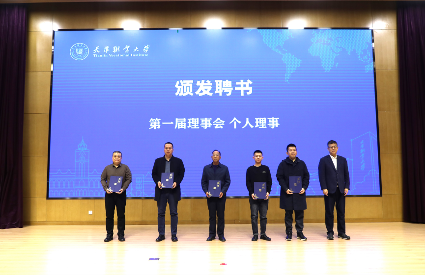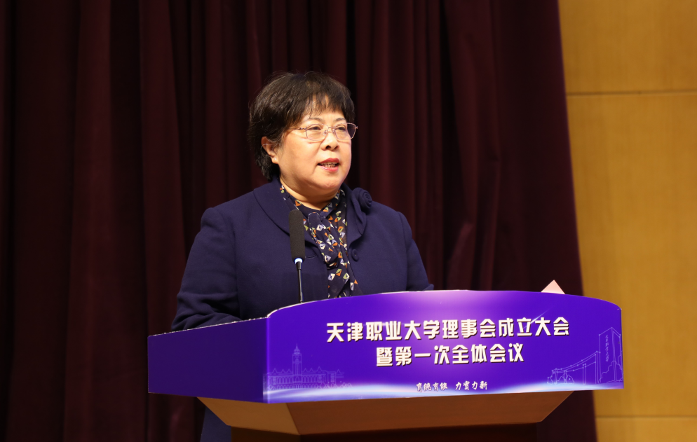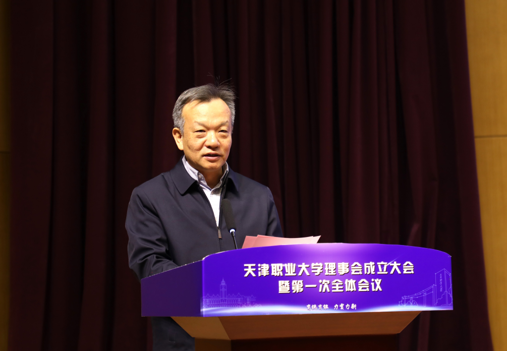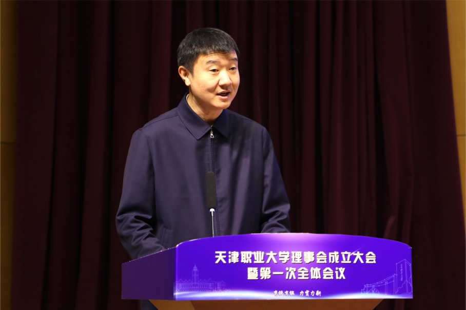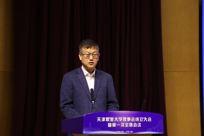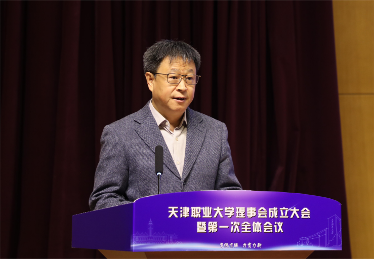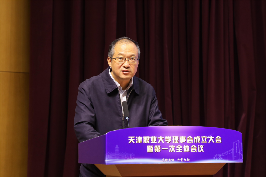 津南区海河教育园区副主任詹珽、天津职业技术师范大学副校长蔡玉俊、天津电子信息职业技术学院党委书记徐瑞成对学校理事会的成立表示祝贺并讲话。