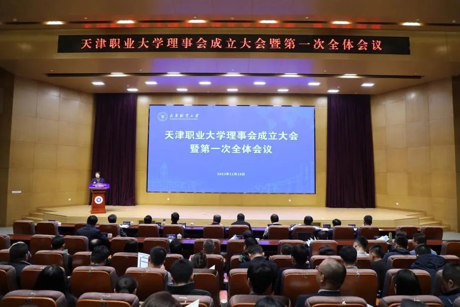 11月18日上午,beat365英国官方网站理事会成立大会暨第一次全体会议在图书馆报告厅举行。市教委副主任徐广宇、市人社局副局长刘宇、市发改委社会发展与就业处副处长蒋伟、北辰区区委常委、宣传部部长贾春宁和津南区海河教育园区副主任詹珽和学校领导班子成员出席会议;天津职业技术师范大学副校长蔡玉俊和天津电子信息职业技术学院党委书记徐瑞成作为院校代表到会祝贺;来自行业企业的60余家理事单位代表,校友代表、师生代表共计200余人参加大会,共同见证了学校理事会的成立。