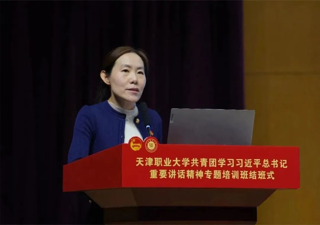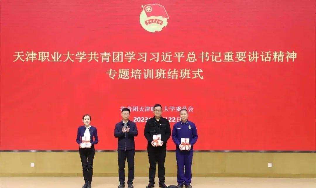 学员代表旅游学院学生团干部单琳和教师团干部代表经管学院团委副书记袁晓瑢分别做专题学习成果微宣讲,分享了学习体会与收获,鼓励大家刻苦学习、知行合一、为校争光。汽车学院梁正昌、赵武英、艺工学院徐畅、机电学院甘齐昊、电信学院赵庆祖作为四次实践活动的主要成员,展示了滨海新区爱津留津岗位认知,北辰区为老志愿服务、“青年之家”读书会、宝坻区乡村振兴等四次实践体验类主题团日活动的学习成果,让大家感受到大学生活的精彩,体会到实践锻炼的重要意义,通过深入基层、走访调研,既能提升社会化能力,更能学有所用,发挥好专业技能优势,助力区域精神文明建设。