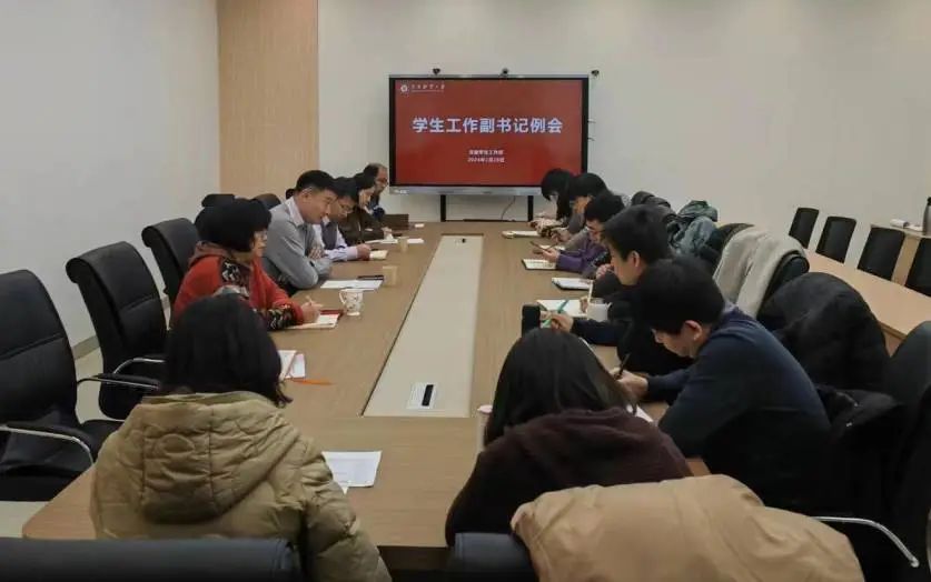 会上,学工部、团委相关负责人就开学初学生思想政治教育、日常安全管理、心理健康教育等日常工作及年度重点工作进行了安排部署,各学院党委副书记就学生返校情况、学生思想动态等近期相关工作进行了汇报。(来源:学工部)