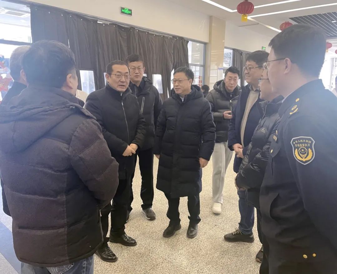 2024年3月1日,北辰区委常委、区委组织部部长郭海,北辰区市场监督管理局党委书记、局长冯文革及小淀镇领导一行莅临beat365官网北辰校区食堂督导食品安全管理工作。校党委书记夏静波,党委副书记、校长郑清春,党委常委、副校长刘石英等陪同检查。