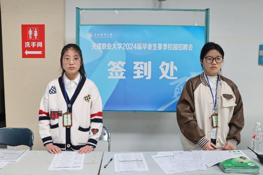 为确保招聘会顺利进行,“就业导航”社团的志愿者积极参与了会场准备、企业接待和问卷调查等环节,提供会场各项服务。