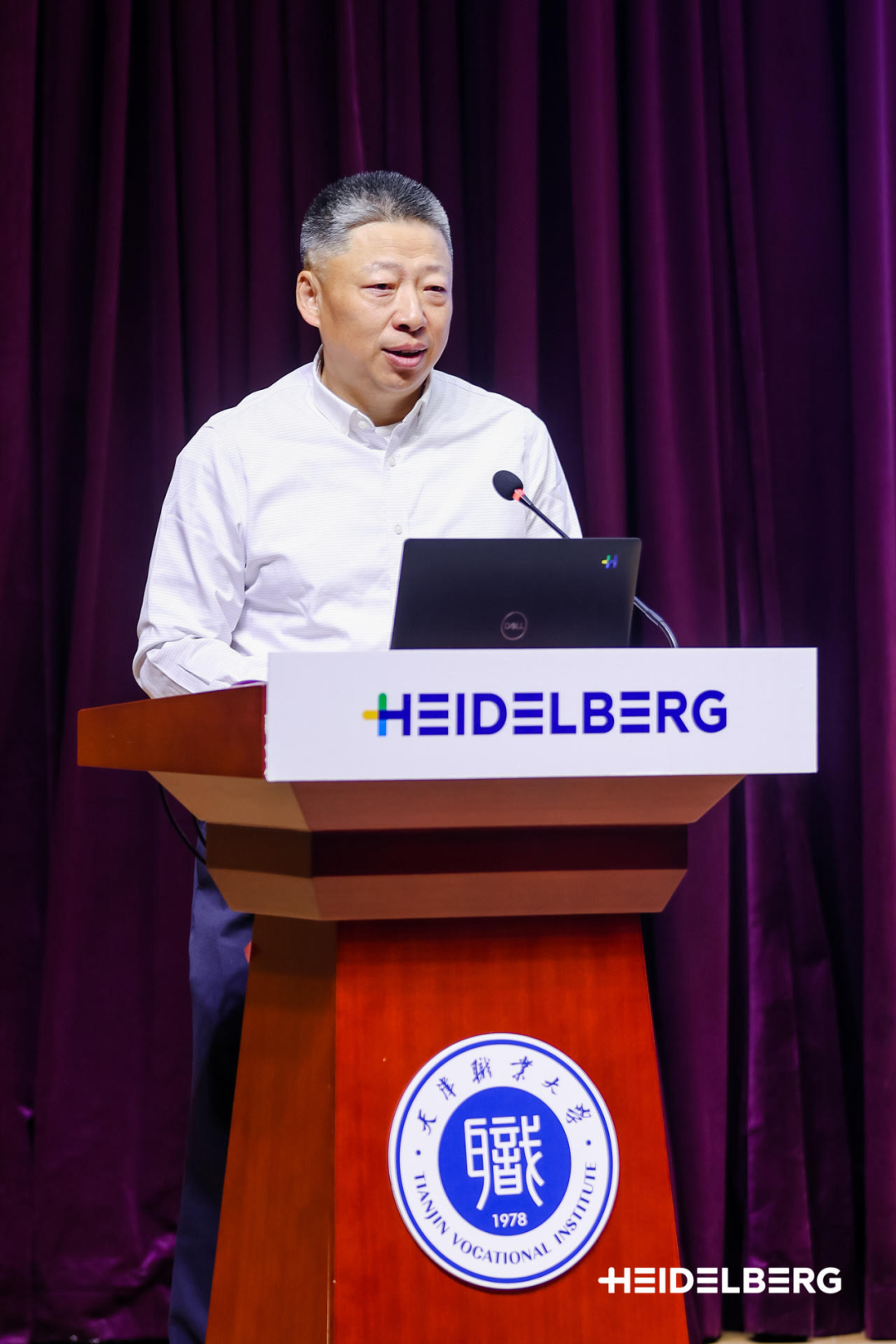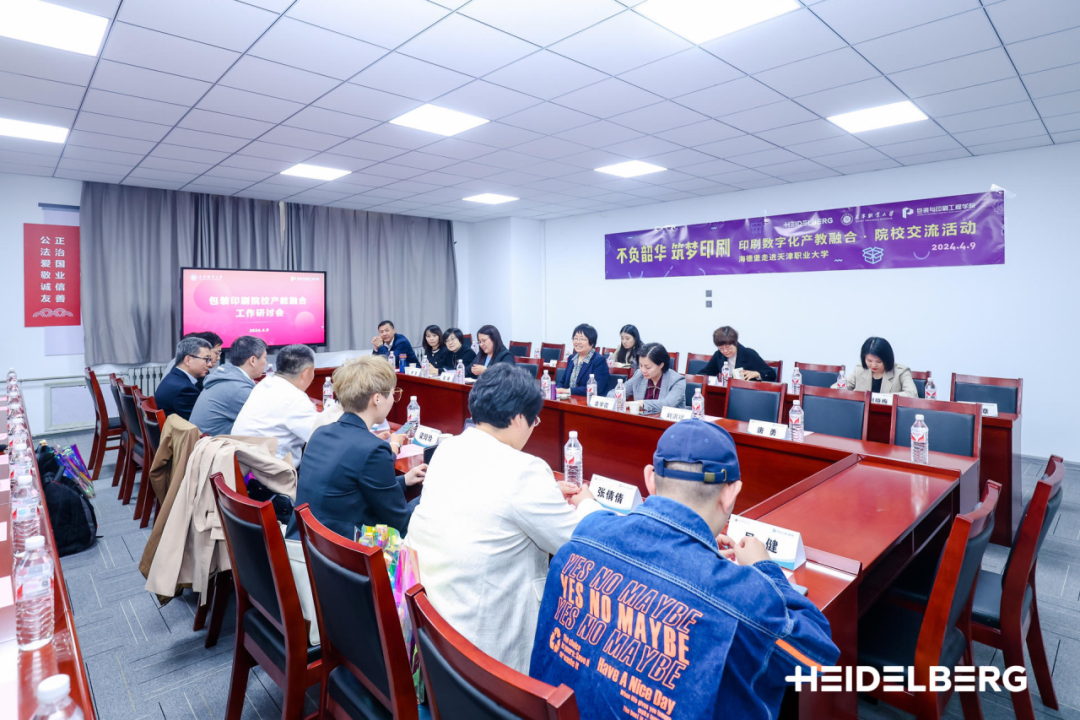 为汇聚各方智慧、共同探讨学校产教融合发展方向与路径、促进校企合作取得新成效,为培养创新型人才提供有力支持,4月9日由beat365英国官方网站包装与印刷工程学院和海德堡中国有限公司联合主办的“印刷数字化产教融合院校交流会——海德堡走进beat365英国官方网站”在beat365英国官方网站图书馆三楼报告厅顺利召开。beat365英国官方网站副校长杨荣敏、海德堡华北区销售总经理高远平以及北京绿色印刷包装产业技术研究院、北京印刷学院、山东工业技师学院、临沂技师学院、河南省新闻出版学校、乌鲁木齐职业大学、四川工商职业技术学院、天津科技大学、北京盛通印刷股份有限公司、天津宜药印务有限公司等代表参加会议,会议由海德堡公司数字化事业部的梁敏主持。